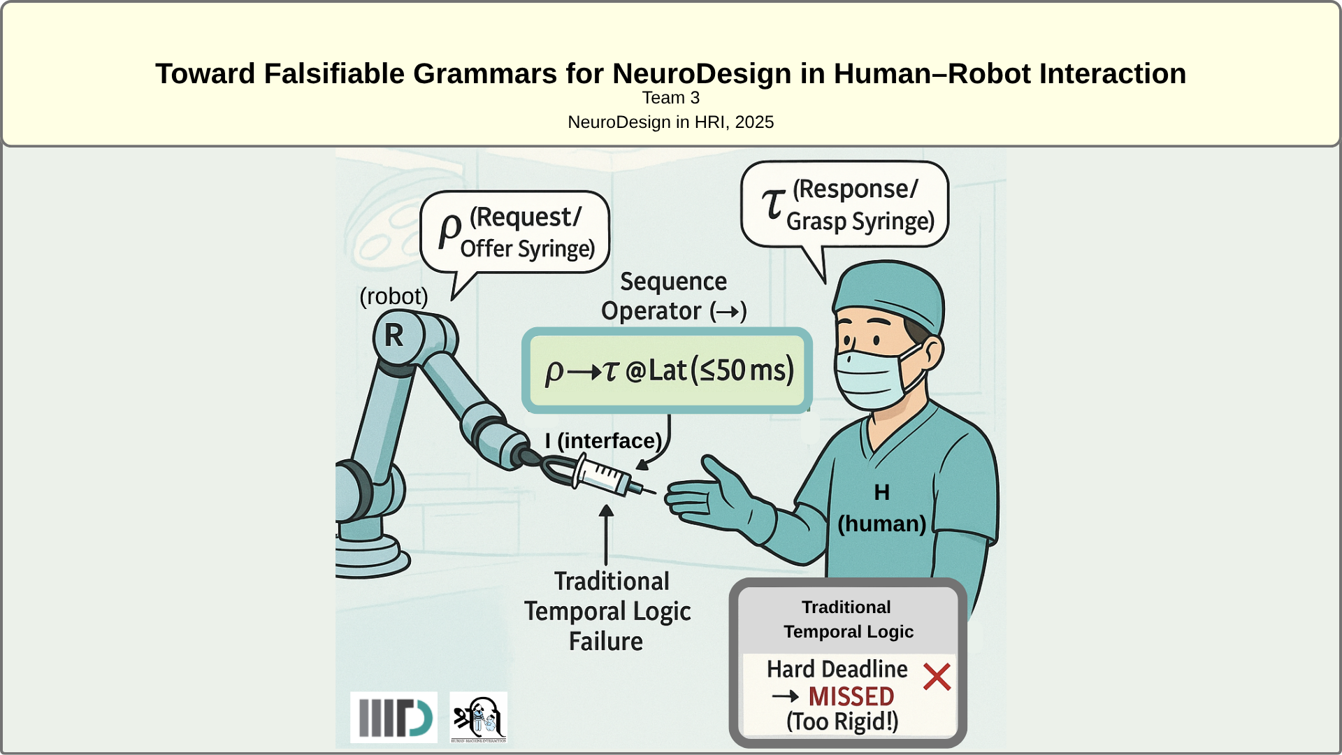 Team 3: Toward Falsifiable Grammars for NeuroDesign in HRI