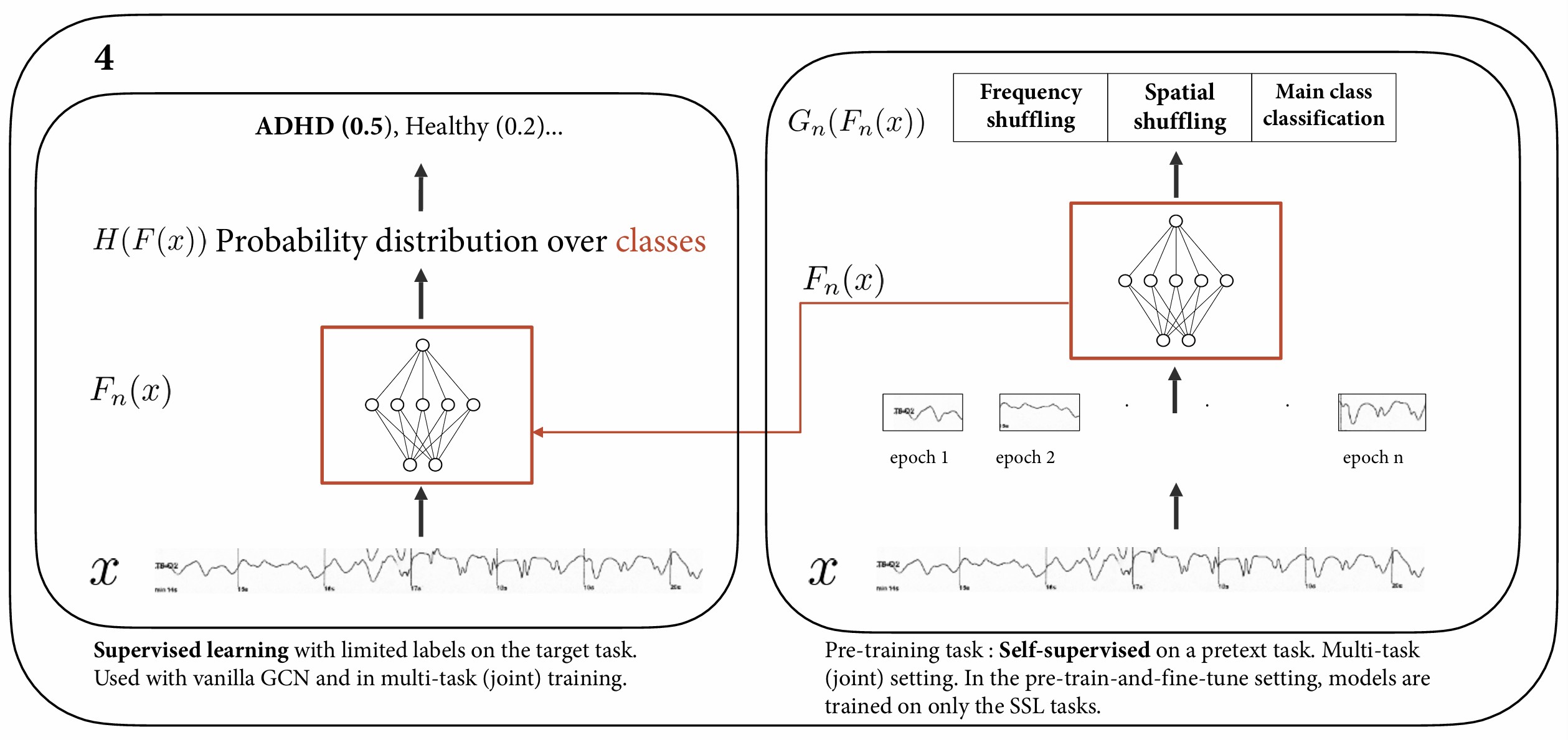 Bring Your Own Labels" explores how graph neural networks and self-supervised learning can unlock hidden patterns in EEG data for psychiatric screening. By building a reproducible, scalable preprocessing pipeline and testing novel graph-based models, this work advances the search for reliable biomarkers in mental health. Results show that graph-based approaches outperform conventional baselines, highlighting their potential to transform human-centered neurotechnology and adaptive human-robot interaction.